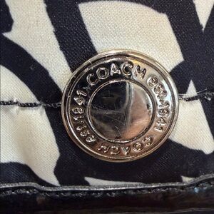 Coach black and tan/red accents, raspberry lining, 11 ny 10 adj shld/crss 2 tag