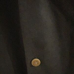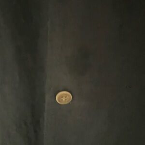 Preowned- has “ring around the collar” and a stain near one of the buttons- (see photos).