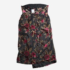 NWT SHOWPO Jessell Flocked Velvet Midi Dress US Size 14 Strapless Black Floral