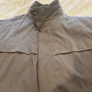 Stylish bomber jacket with a rugged design. Features a warm inner layer. Ideal for outdoor adventures. Very good pre-owned condition. *Please note one little call-out in the last two pics, a 1/4” thread pull. Barely noticeable and easily fixable. Please also check measurements bc it is a generous-sized medium.