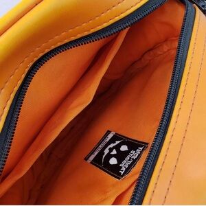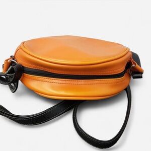 Add a playful touch to your outfit with this orange pumpkin face crossbody bag. Perfect for Halloween or any fun occasion. Features a unique design with black accents.
