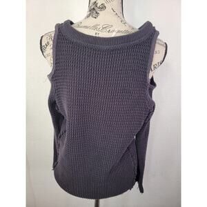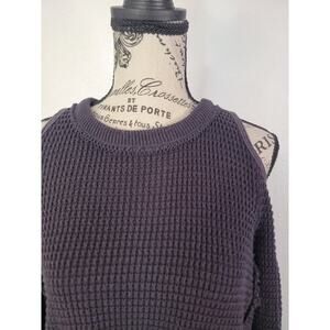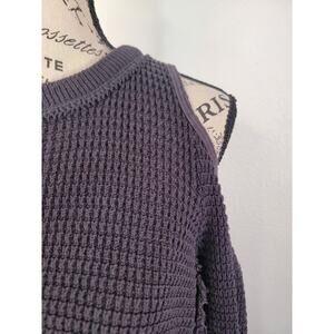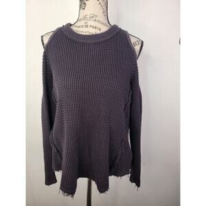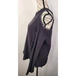 Free People Thermal Top XS Moonshine Cold Shoulder Sweater Grunge Distressed Hem