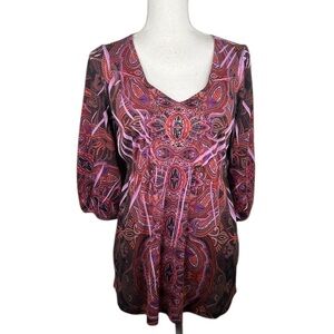 Apt. 9 Purple Y2K 90's Paisley Beaded Boho V-neck 3/4 Sleeve Top