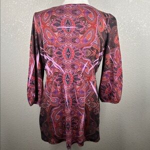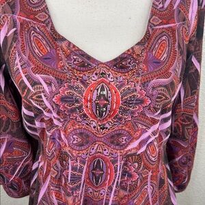 Apt. 9 Purple Y2K 90's Paisley Beaded Boho V-neck 3/4 Sleeve Top Size Medium