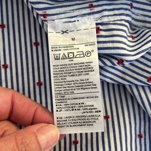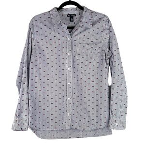 GAP Blue & White Stripe Embroidered Bow Button Down Long Sleeve Top Size Medium
