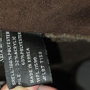 Impermeable by Weatherproof has given warmth and comfort with this brown collared button front jacket in a faux suede. Two faux fur lined pockets are on each side of Jacket. The interior also has a special pocket just for your cellphone! It's so ideal for cold weather outings. Pre-owned and in excellent condition.