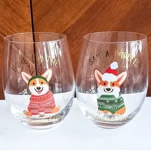 So festive and cute! One glass says "Santa paws is coming to town" and the second glass says "Home fur the holidays"! Brand new, never used! Awesome for Corgi lovers! Price firm.
