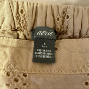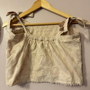 Aerie Tan Embroidered Eyelet Crop Top Tie Shoulder Size S