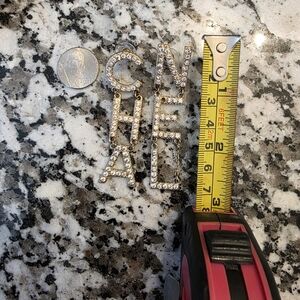 hand made earrings. missing a crystal on the E. show signs of wear and discoloration on the back. open to offers. comes with box.