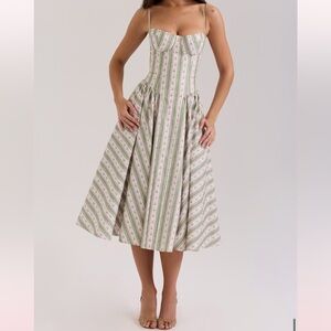 Sage and pink House of CB dress, worn once for a wedding. Extremely flattering corset bodice, size small with an A-C cup size