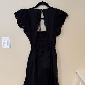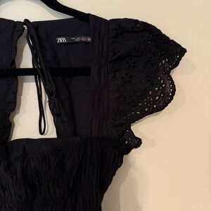 Elegant black maxi dress with delicate detailing. Perfect for evening wear.