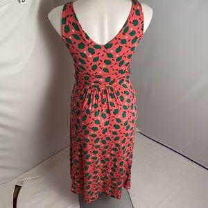 Boden fit and flare pink jersey dress with green pear pattern 4