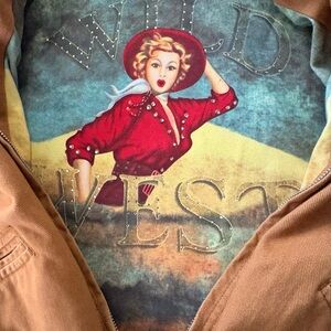 Vintage ETHYL”S LG Golden Brown Jacket with Graphic Wild West Lining