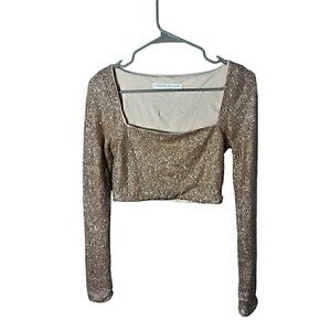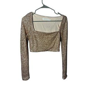 Susana Monaco Sequin Long Sleeve Crop Top Women SM Taylor Swift Era Holidays