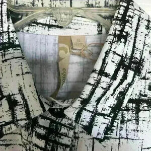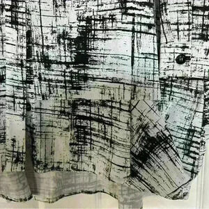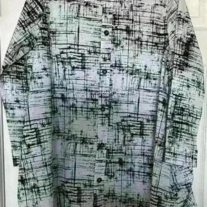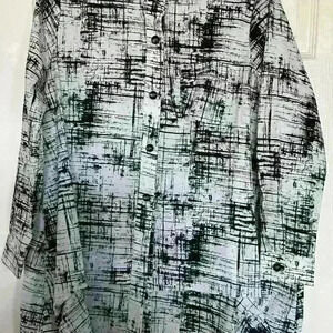 This Comfy USA Size Small tunic is the perfect addition to your wardrobe. The black and white geometric print is eye-catching and the oversized fit is comfortable. The button-up closure and collared neckline make it suitable for both casual and business occasions.