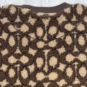 Coach Signature Sherpa Fleece Pullover Sweatshirt Brown Tan Women’s