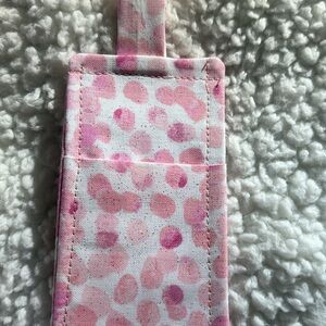 Stylish lanyard with pink and white heart pattern. Perfect for keys or ID.