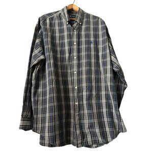 Ralph Lauren Plaid Button-Down Shirt Blaire Black Blue Cotton Long Sleeve Large