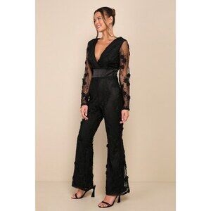 Lulus Elevated Allure Black 3d Floral Embroidered Long Sleeve Jumpsuit - Size XL