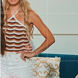 Hollister White and Brown Striped Crochet Halter Top