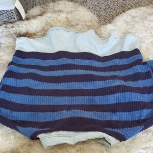 Pilcro Blue and Black Striped Crewneck Sweater