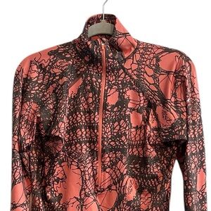 Nike Pro long-sleeve, quarter-zip pullover top, featuring a unique coral and black web pattern