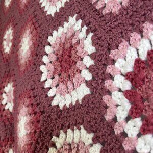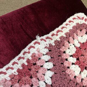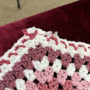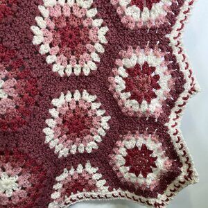 Vintage Handmade Pink & White Hexagon Granny Square Crochet Blanket Valentines