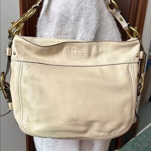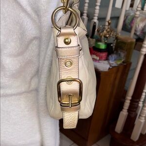 Coach Zoe Vintage shoulder bag leather Ivory / gold metallic trim F12671 EUC