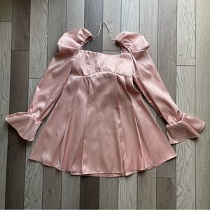 ASOS LUXE Satin baby doll dress with bow in pale pink