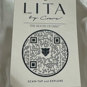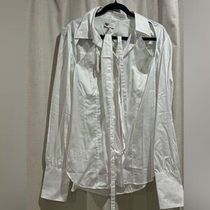 Lita by Ciara cut out button-down top with Obi style belt size large. Cut outs at shoulders and upper back comes with removable obi style belt. Please look at photos. It’s colored and button down and has a long sleeve with buttons.