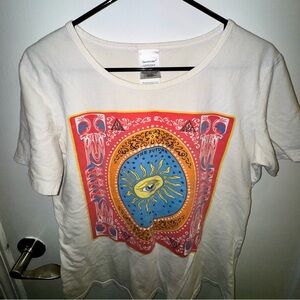 Wide neck, lightweight shirt. Super cute eyeball/tarot design in the middle, "The Future".