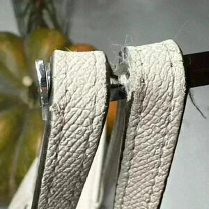 This is a used, preowned bag. There are some scuffs, nicks and scratches which we have enlarged in the photos so you can see them. They are not as obvious "in person." There is a small ink spot on the bottom of the bag and the bottom corners show minor wear. The two straps is where you see the most wear and tear. Again, we have enlarged these 3 x's so you can see it. A cobbler could easily repair the straps. As with any preowned bag, this bag is being sold "as is." The color on these photos may vary slightly from "in-person" item due to settings on various electronic devices.