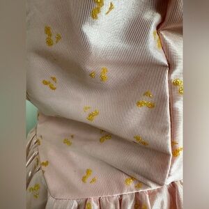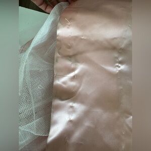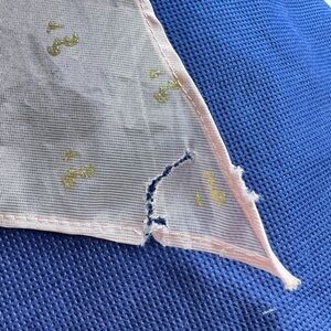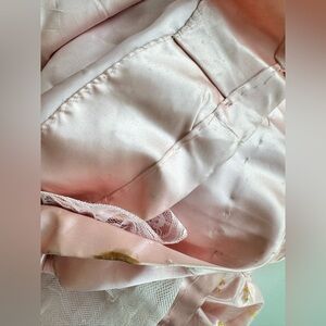 Used... in good condition. sign of normal wear. Some smudges around the bottom of the dress please see pictures provided. The corner of the back tie has a tear. Overall in good used vintage condition