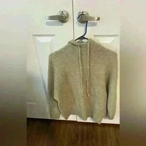 Calia Neutral Beige Ribbed Sweater Knit Hooded Pullover