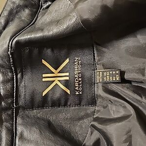 Black Kardashian Kollections Faux Leather Pre-Cared for, with only 2 small flaws other than that in very good condition. Review all the photos for details.