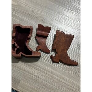 Keywords: wooden box, trinket holder, keepsake, hand carved, lidded, cowboy boot, western, rustic, artisanal, decorative, storage, gift, novelty