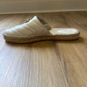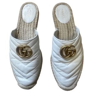 Keywords: Gucci, Gucci shoes, gucci espadrilles, designer shoes, luxury shoes, espadrille, mule, quilted mule, quilted espadrilles, slip-on shoes, white leather, white shoes, quilted leather, summer shoes, vacation shoes, resort wear, casual chic, everyday luxury
