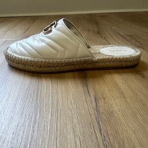 100% Authentic Gucci White Quilted Pattern Espadrille Mules.