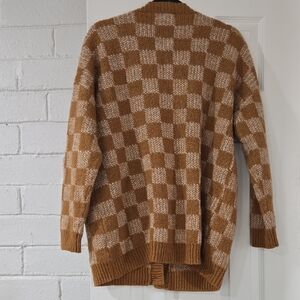 Cozy checkered cardigan with button front. missing top button. Ideal for layering. size Medium