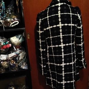 Chic plaid design. Double-breasted style. Perfect for layering.