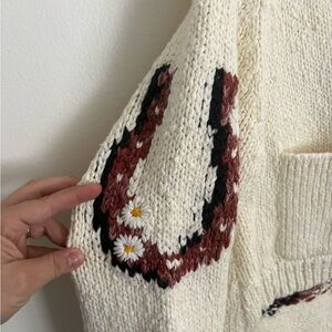 Anthropologie Pilcro Western Horse Sweater Button Cardigan Cream Women’s Small