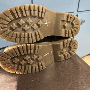 The Relativity Brown Leather Lace Up Boots in Women's size 9 are a stylish and comfortable option for casual wear. With a chunky lug sole and ankle height, these boots feature a round toe, lace-up closure, and block heel for added style and stability. Made of leather, these boots are perfect for the fall, winter, and spring seasons, embodying a grunge-inspired Y2K aesthetic. The brown color and logo accents give these Chelsea-style boots a trendy and unique look, making them a versatile addition to any woman's wardrobe.