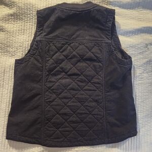 Durable black quilted jacket with snap buttons. Features Carhartt logo.