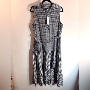 UNIQLO Sz L Black and White Gingham Sleeveless Dress Tiered Ruffles NEW WITH TAG