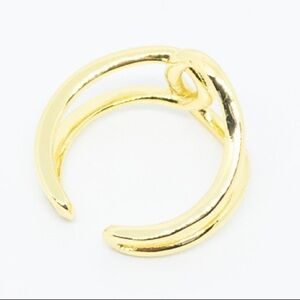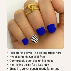 Timeless elegance meets modern design. This 100% real solid .925 sterling silver ring is coated in a rich gold finish with a smooth, high-polish shine. The interlocked, sculptural design adds a bold minimalist touch that flatters any hand. Adjustable for the perfect fit, it’s ideal for everyday wear or layering with other pieces.