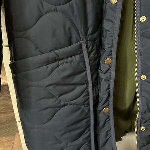 J. Crew Signature Puffer Coat Navy with Gold Accents size Medium