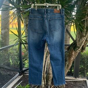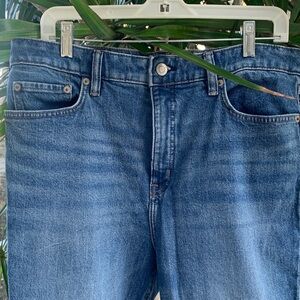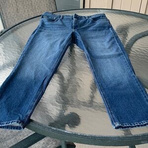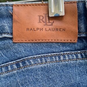 Upgrade your wardrobe with these blue, with different fading Lauren jeans. Mid to high waist. Like new, 14. See measurements in pictures. Front zipper, belt loops. Front and back pockets.