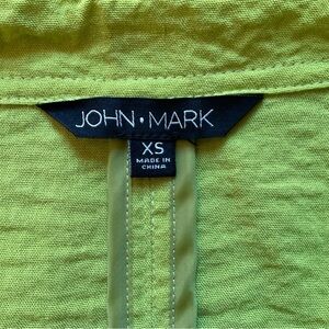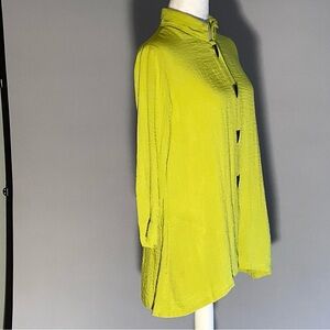 John Mark Chartreuse XS Mandarin Tunic with Black Shark Tooth Buttons Back Slit