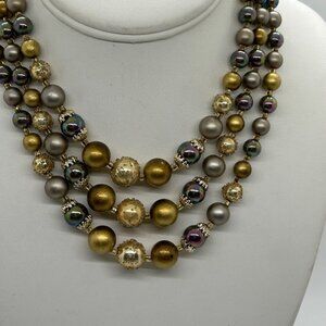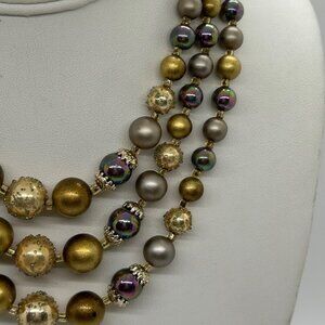 Vintage Multi-Strand Necklace Iridescent Gold Tone Pearlescent Beads Pro Formal