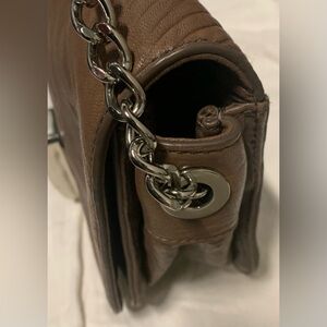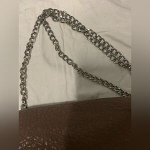 Stylish brown leather shoulder bag with a chic chain strap. Perfect for any occasion.